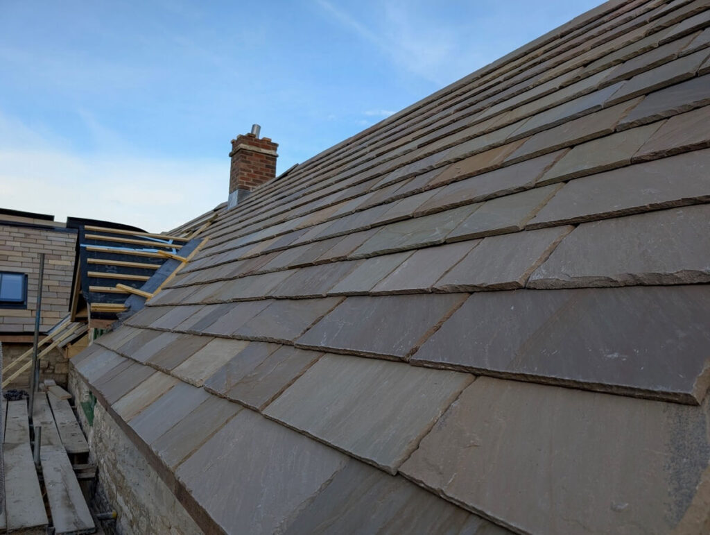 We worked alongside the contractor for a few months before supplying the full stone roofing system, fixings, ridge and membrane for this project, answering questions and ensuring we could supply and deliver to their timeline, which was no problem.